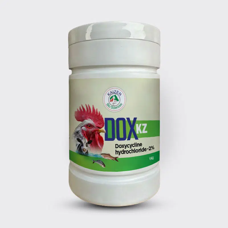 Doxycycline hydrochloride – 2%, Cooked proteins – 2%, Vitamin C – 1%, Excipients – Q.S.